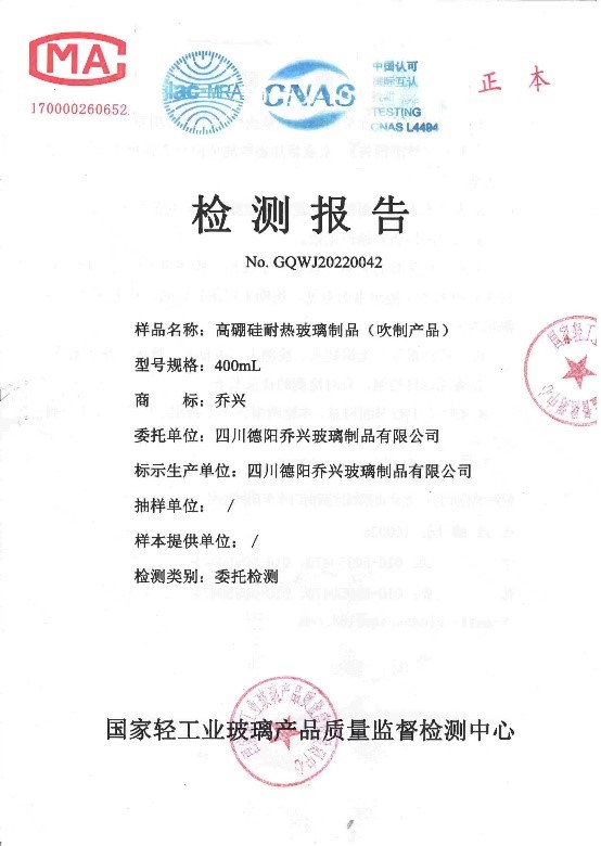 國家輕工業玻璃產品質量監督檢測中心檢測報告NO. GQWJ20220042檢測項目標準要求檢測結果單項判定線熱膨脹系數α(20℃~300℃)=(3.3...